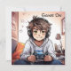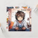 Invitation à la fête d'anniversaire du garçon personnalisée. Anime garçon jouant à des jeux vidéo graphiques. Joli jeu vidéo à thème fête d'anniversaire.