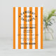 Commencez la fête avec l'invitation Gameday Tailgate Club Kick Off Party Orange Team Custom Football Invitation! Doté d'un design crête inspiré du football et de rayures oranges audacieuses. Cette invitation donne le ton parfait pour les tailgates, les fêtes d'observation et les célébrations du jour du jeu. Imprimé sur un carton de haute qualité, il est aussi durable que festif, prêt à rallier votre équipe pour la nourriture, le plaisir et le football. Personnalisez-le pour mettre en valeur votre esprit d'équipe et faire de chaque fête de lancement un événement à retenir.
