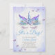 C'est un Baby shower garçon - oreilles violettes et bleues brillantes et corne bleue, cils violets somptueux entourés de coeurs violets bleu brillant avec un spray floral bleu et violet magnifiquement peint sur son front - Aquarelle arrière - plan avant et arrière, facile de customiser le détail de ce magnifique imaginaire Unicorn Baby shower Invitation. Oeuvre originale de © WhimsicalArtwork™