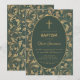 Invitation Garçon Baptême Or Chardon Croix Vert Ovale Élégant