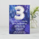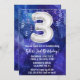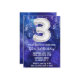 Garçon bleu blanc 3ème anniversaire invitation garçons 3 anniversaire invitation pour un garçon bleu violet avec écriture de script moderne et des ballons de papier amusant.
