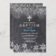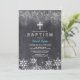 Design élégant et unique avec des flocons de neige blancs, des lumières à cordes colorées, sur arrière - plan de tableau noir. Utilisez l'outil Personnaliser pour ajouter vos informations, modifier la couleur de police. Pour les articles correspondants, veuillez visiter ma collection de célébrations Baptême/Christening .