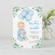 Garçon mignon eucalyptus moderne ballons bleus Invitation