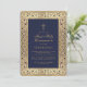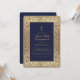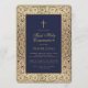 Cette élégante invitation à la première communion florale à l'air vintage a un cadre doré fleuri de décorations roses sauvages complexes sur un arrière - plan bleu marine. Tout le texte peut être personnalisé et a une couleur dorée semblable aux roses dorés sur le cadre. Au-dessus du texte, il y a une croix d'or. Les mots "Première Sainte Communion" sont écrits dans un élégant script calligraphique. Sur le dos, il a une croix d'or sur arrière - plan bleu marine. Le cadre rose d'or est tiré d'une couverture vintage de 1912, de The Complete Poetical Works of Geoffrey Chaucer, maintenant dans le domaine public.