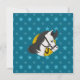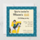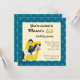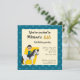 Imprimer les invitations pour la fête d'anniversaire du garçon avec l'illustration d'un garçon à cheval chevauchant un mignon poney blanc à crinière noire, sur un motif bleu transparent avec étoiles, dessin animal de ferme pour enfants