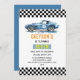 Invitation Garçon voiture de course bleue cool pour l'anniver