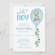 Invitation Garçons Bear Blue Balloon Eucalyptus Baby shower