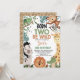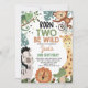 Garçons Brown Green Born Two Be Wild 2nd Birthday Invitation Les mignons garçons safari ou invitation de deuxième anniversaire à thème sauvage mettant en vedette six animaux de la jungle. Le verso de l'invitation est accompagné d'un motif d'impression de guépards.