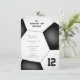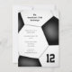 Cette invitation d'anniversaire sur le thème de football sportif pour garçons ou filles présente l'image d'un ballon de football abstraitement surdimensionné noir et blanc sur lequel vous pouvez personnaliser tous les détails de la fête - par katz_d_zynes