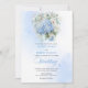 Set the tone for a stylish and unforgettable celebration with this watercolor blue and gold wedding invitation, designed around today’s most trendy wedding color palette. Featuring soft pastel, powder, light, and pale blue hydrangeas, paired with fresh eucalyptus greenery and elegant gold floral accents, this design captures modern romance with timeless appeal.