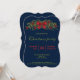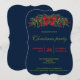 Carte d'invitation Festive Noël avec l'illustration originale de Destei d'une guirlande festive de sapin vert ornée d'un grand arc rouge, de billes rouges de Noël et de quelques faux luminaires. La couleur arrière - plan est bleu foncé. Personnalisez les zones de texte exemples avec les détails de votre événement.