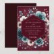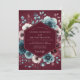 Embrace a dramatic and romantic atmosphere with this elegant floral design. A deep burgundy backdrop provides a stunning canvas for lush blooms in shades of slate blue, dusty rose, and creamy white. Artistically rendered anemones and delicate buds create a moody, painterly arrangement perfect for a sophisticated union.