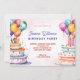 Invitation Gâteau d'anniversaire aquarelle coloré et ballons