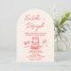 Cette invitation de mariage est parfaite pour votre mariage si vous cherchez une invitation arquée élégante, unique et facile à éditer. Un modèle d'invitation de mariage à l'arc dessiné à la main, élégant, unique, simple, minimaliste, crème et rouge. Qui présente un fond vintage crémeux uni sur le devant et un gâteau dessiné à la main et des verres à champagne. Et les prénoms de la mariée et du marié écrits à la main en noir de manière fantaisiste. et informations modifiables. Abordable et c'est aussi une invitation électronique numérique si vous souhaitez l'envoyer par SMS ou e-mail. Toutes les informations sont personnalisables en cliquant sur le bouton Personnaliser. Alors saisissez-le et faites-en vôtre pour que vos invités soient engagés et enthousiastes.