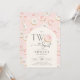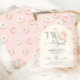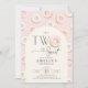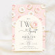 Carton d'invitation anniversaire 2 ans rose Donuts. Deux doux invitations. Design tendance mignon en rose poudré or et crème. Caractéristiques beignets, arche et typographie moderne police de script coeur. Parfait pour une célébration de deuxième anniversaire de fille stylée. Personnalisez avec vos propres détails. Cartons Zazzle imprimés ou modèle de template numérique imprimable instantané.