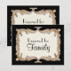 GAMME DE COULEURS : Noir, crème et imitation métal doré. COLLECTION DE DESIGN : Panneaux personnalisés recto-verso assortis « Réservé à la famille » pour votre cérémonie de mariage ou réception. Vous pouvez personnaliser chaque panneau pour refléter chaque utilisation, notamment « Table des desserts », « Table des cartes », « Livre d'or » et plus encore. Il s'agit d'un ensemble d'invitations de mariage qui comprend la plupart des éléments dont vous pourriez avoir besoin pour coordonner la décoration de votre mariage. En utilisant l'art linéaire floral stylisé vintage antique original Art Déco et Art Nouveau, Audrey Jeanne Roberts a conçu graphiquement ce look de feuille d'or glamour, une bordure dorée luxueuse apparaissant en relief, avec des feuilles qui s'enroulent autour de la bordure avec une grande élégance. Le travail de défilement est élégant et épuré. Il y a aussi des séparateurs de typographie en forme d'ornements d'imprimeur. Sous le cadre, il y a un motif de fond en dent