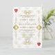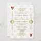 Conception de carte unique sur le thème de Casino Royale et Gatsby le Magnifique. Elle présente un style art déco vintage, un cadre old Hollywood des années 1920 rugissantes avec des Fleur-de-lis en faux or, des cœurs rouges, Q et K dans deux coins (simulant des cartes à jouer), sur fond à motif Art Déco or blanc. Un libellé spécial est utilisé comme dans un jeu de poker. Au dos, motif Art Déco en faux or et initiales entre les enseignes de cartes à jouer. Utilisez l'outil de personnalisation pour ajouter vos informations. Pour plus d'informations, veuillez visiter ma collection Gatsby Casino.
