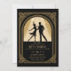 Un bon plaisir rugissant vous attend avec cette élégante invitation à la fête d'anniversaire avec un thème des années 20, avec un cadre déco et la silhouette d'une fissure dansant avec son partenaire. Un modèle parfait pour une fête d'anniversaire pour un thème Great Gatsby, en or et noir. Que ce soit pour un 40ème, 50ème, 60ème, 70ème ou 80ème anniversaire, ou pour une vingtaine d'années, ce cadre Art déco nouveau vintage sur le thème de la feuille d'or noire (effet numérique) brillera. Une soirée à thème, dans les années 20, pour une poupée de tout âge.
