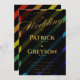 This stunning gay men wedding invitation features elegant rainbow stripes flowing diagonally across sophisticated black with luxurious gold script typography. Bold, masculine, and impossible to ignore—this design commands attention while celebrating love beautifully. Perfect for invitations, save the dates, and thank you cards. Fully personalized with your names, wedding date, and details. Stand out with a design as unique as your love story.