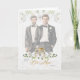 Two grooms in tuxes with two gold wedding bands and white flowers, all with an elegant feel and text on the card front and inside is fully customizable by you to fit both you and the recipient of your Wedding Attendant Invitation to be your Best Maid.
