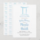 Invitation Gémeaux Astrologie Zodiaque Bleu Fête Prénatale Ma