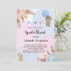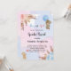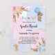 Pour un baby shower moderne de style boho, le genre révèle la fête. Un arrière - plan bleu, rose, blanc aquarellé. Décoré d'or rose, de fleurs rose et bleu clair, de roses, d'herbe pampas et de deux nounours tenant des ballons. Personnalisez et ajoutez un nom et des détails du parti.