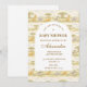 A sweet storybook-style safari design featuring gentle watercolor baby animals including lions, giraffes, and elephants surrounded by soft jungle greenery and a delicate botanical background. The warm neutral palette of cream, honey gold, and soft olive creates a timeless nature-inspired aesthetic, while the elegant arched layout provides a beautiful space for event details.