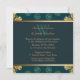 Invitation Geo Gems Circle Monogramme Turquoise Mariage or