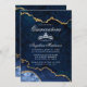 Aquarelle moderne Elégante Bleu et Or Marbre Agate Géode Quinceanera Invitation