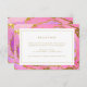 Ces cartes d'encart de réception de mariage élégantes et modernes présentent des pierres de géode aquarelles roses et bleues tendance avec des accents de faux or.