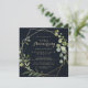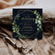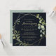 This geometric gold green 50th wedding anniversary invitation is perfect for a romantic wedding anniversary celebration. The design features hand-painted beautiful green leaves in a dark blue background, adorning a gold geometric frame.
