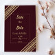 Elevate your Save the Date wedding style with these modern burgundy and gold invitations, featuring sleek geometric accents and elegant typography.