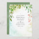 Invitation de mariage dans un jardin verdoyant avec cadre géométrique or et lave à l'aquarelle verte sage inversée conçu pour être rapidement et facilement customisé à vos détails de l'événement. Idéal pour un thème ou un mariage de jardin. Le code QR au verso dirige vers votre site mariage où les gens peuvent en savoir plus et rsvp.