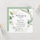 Cette invitation à la fête de réchauffement en or géométrique et élégante est parfaite pour une simple célébration de la nouvelle maison. Le design est orné de feuilles d'eucalyptus verts peints à la main et ornés d'un cadre géométrique doré.