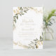 Cette invitation à la douche nuptiale espagnole aux verdure dorée géométrique est parfaite pour une wedding shower moderne. Le design se compose d'un magnifique cadre géométrique doré avec d'élégants feuilles verts.