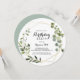 Cette invitation de fête d'anniversaire de calligraphie tropicale en or géométrique est parfaite pour une fête d'anniversaire moderne. Le design présente de beaux feuilles verts peints à la main, ornant un cadre géométrique doré.