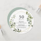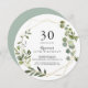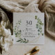 Cette invitation à la fête du 30ème anniversaire de l'or tropical vert géométrique est parfaite pour une fête d'anniversaire moderne. Le design présente de beaux feuilles verts peints à la main, ornant un cadre géométrique doré.