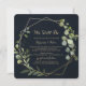 Cette invitation à renouveler vow est parfaite pour une simple cérémonie et célébration de renouvellement vow. Le design présente de beaux feuilles verts peints à la main dans un arrière - plan bleu foncé, ornant un cadre géométrique doré.
