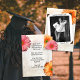 Invitation de la fête de remise de diplômes de la marguerite Gerbera. Ajoutez la photo du diplômé à l'avant de ce style grunge, design floral, avec du texte personnalisé en haut et en bas du cadre. Inclure son nom, l'année de classe et le texte d'information du parti à l'envers. De plus grandes marguerites roses et oranges ornent le dos.