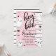 Une fête d'halloween pas éffrayante ! Pastel rose Hey Boo Ghost Invitation d'anniversaire d'Halloween avec arrière - plan rayé noir et blanc.