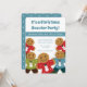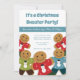 Une invitation aux couleurs bleu et blanc et cinq hommes en pain d'épice souriants en chandail de Noël. Customisez les mots, ajoutez cet invitation à votre panier et faites une fête de Noël amusante !