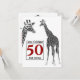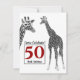 Célébrez un anniversaire important dans un style exotique animal sauvage avec cette invitation d'anniversaire de girafe safari. L'invitation est présentée comme un 50ème anniversaire, mais vous pouvez personnaliser avec notre modèle facile pour n'importe quelle année d'anniversaire.Couleurs: Noir, blanc et une touche de rouge.
