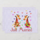 Deux girafes mignonnes tiennent des bouquets de fleurs tandis que des cœurs de couleur arc-en-ciel les entourent. Également charmant pour une répétition de mariage gay ou hétéro, une cérémonie informelle et une réception.