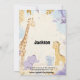 Célébrez le deuxième anniversaire de votre petit avec cette charmante invitation à thème pour la girafe et l'éléphant. Doté d'une palette de lavande douce et de bleu ciel, ce design reflète l'esprit ludique d'une journée spéciale pour les tout-petits. Idéal pour une fête en plein air sur le thème de l'aventure, cette invitation donne le ton d'une fête amusante. Personnalisez avec les détails de votre fête et faites cette invitation uniquement à vous.