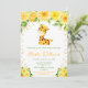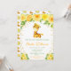 Cette invitation au baby shower mignonne et fantaisiste présente une adorable girafe avec une couronne de fleurs et des arrangements floraux jaunes avec des confettis de parties scintillant en faux or. Le texte combine écriture manuscrite et polices sans serif pour un look élégant et moderne. Idéal pour un baby shower à thème girafe. Graphiques par heyiamalice et SunflowerDayLove