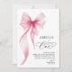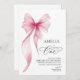 Pink Bow 1st Birthday Invitation - A pretty pink bow coquette themed first birthday invitation with modern watercolour pink bow.
