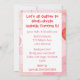 Girl's birthday party invitations with a cute watercolor squirrel wearing a birthday hat and a holding a gift illustration. A cute birthday invitation for any little girl who loves squirrels! The background is pink and red with a watercolor texture.