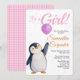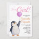 Girl's Penguin Pink Baloon Watercolor Baby Shower Invitation