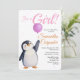 Invitation Girl's Penguin Pink Baloon Watercolor Baby Shower
