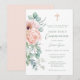 Invitation Girl's Pink and Sage Green Floral First Communion